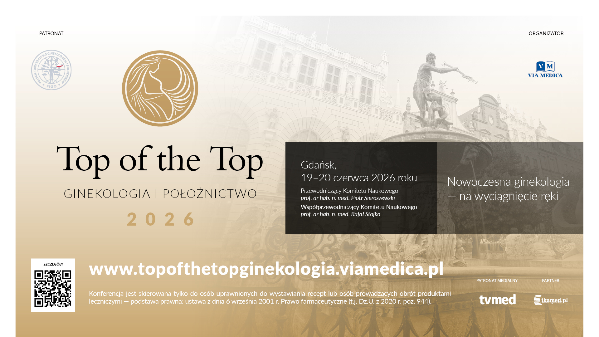 Serdecznie zapraszamy do udziału w Top of the Top Ginekologia i Położnictwo 2026, ogólnopolskiej konferencji poświęconej najnowszym standardom postępowania w położnictwie i ginekologii. Wydarzenie odbędzie się w dniach 19–20 czerwca 2026 roku w Gdańsku, stanowiąc wyjątkową okazję do wymiany wiedzy, doświadczeń oraz dyskusji na temat praktycznych aspektów opieki nad kobietą ciężarną i ginekologiczną. Konferencja skierowana jest do lekarzy, położnych, pielęgniarek, studentów kierunków medycznych oraz wszystkich osób zainteresowanych tematyką ginekologiczno-położniczą.