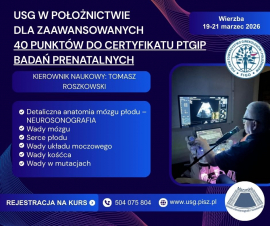 Kurs otrzymuje 40 punktów do Certyfikatu Umiejętności PTGiP wykonywania Badań Prenatalnych.