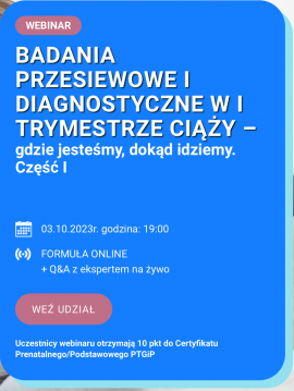 Uczestnicy webinaru otrzymają 10 pkt do Certyfikatu Prenatalnego/Podstawowego PTGiP